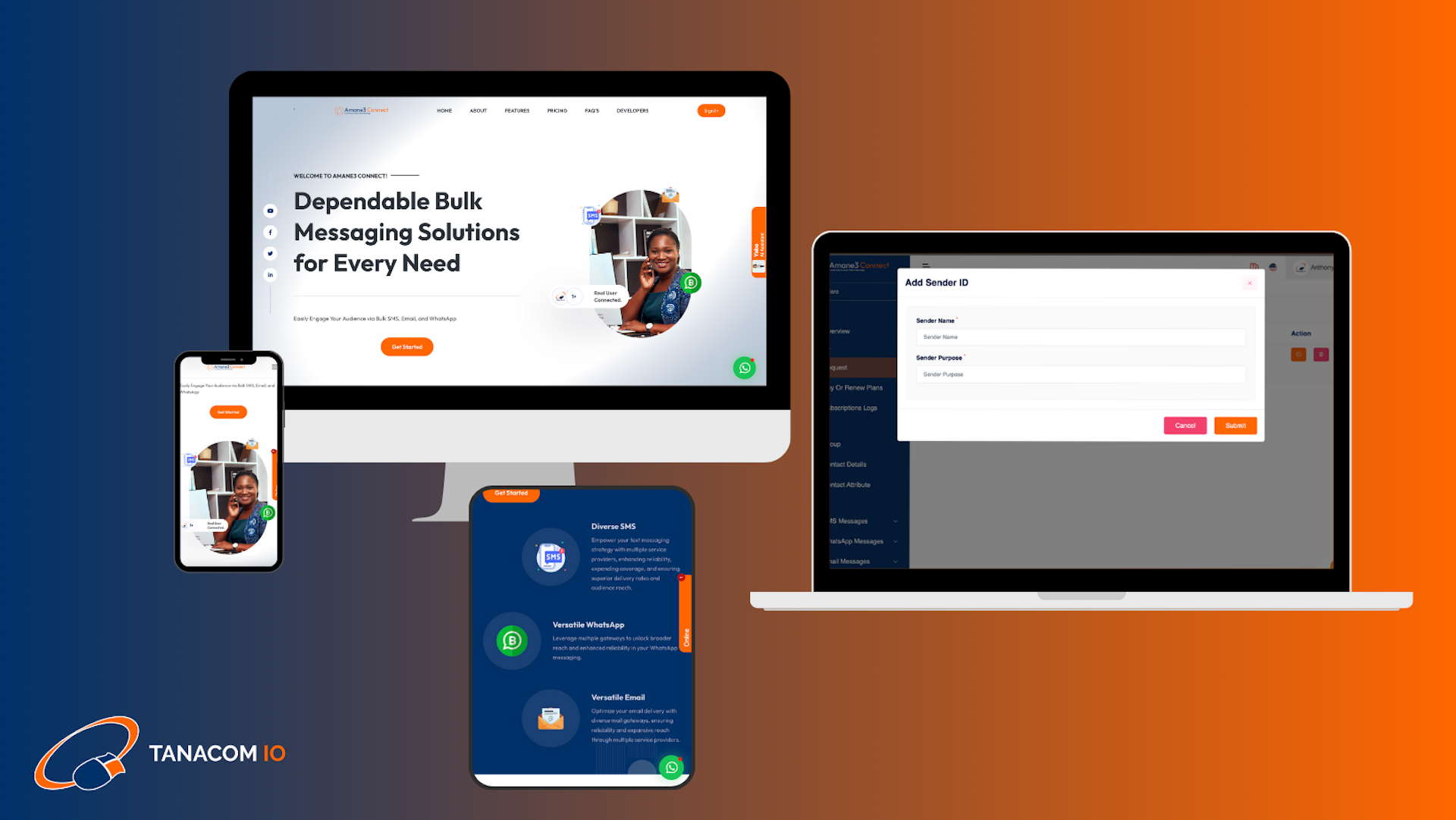TANACOM IO proudly introduces Amane3 Connect, a cutting-edge messaging solution designed to streamline and enhance business communications. Featuring Bulk SMS, Email Solution, and WhatsApp Messaging, Amane3 Connect offers a unified platform to improve efficiency, scalability, and customer engagement. Discover how this versatile tool can transform your communication strategies and help your business thrive.