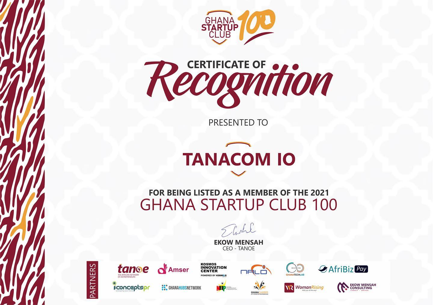 Tanacom IO was named one of the top 100 startups in Ghana in 2021.